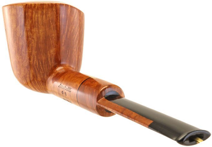 Pipa Amorelli liscia di colore marrone chiaro, modello dritto classico dublin con bocchino in metacrilato nero. Valutazione Busbee 2 Asterischi. La pipa è molto elegante e raffinata, con una linea classica sempre attuale che non stanca mai. Ha un grande impatto visivo dato dalle sue linee pulite ed essenziali. La sua classicità la rende sempre attuale, un modello che non stancherà mai. Il fornello ha il bordo leggermente ondulato che da un senso di movimento alla pipa. La bella fiammatura è di taglio tradizionale presenta una venatura regolare e decisamente fitta su quasi tutta la testa. La pipa è di medie/grandi dimensioni e si contraddistingue per un fornello più che capace per una fumabilità eccellente in ogni situazione. La leggerezza la rende ideale per ogni fumata che sia a passeggio o comodamente seduti in poltrona. Il fornello ha le pareti spesse che non fanno mai scaldare troppo le mani. La serie Lisce sono quelle pipe che non presentano difetti e hanno una venatura regolare e fitta man mano che gli asterischi aumentano. Questa è una Busbee, che è caratterizzata da un pregiato inserto di radica a forma di U sul bocchino rendendolo unico nel suo genere. Questa lavorazione è molto difficoltosa ma di sicuro effetto che le regala un'eleganza superiore. Sono questi particolari che esaltano la bravura artigiana di Totò Amorelli che è considerato tra i più abili pipe maker italiani.