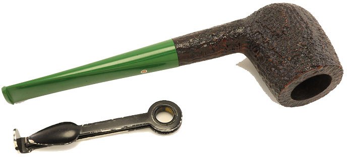 Pipa Ashton Brindle sabbiata di colore marrone scuro, modello classico dritto billiard con bocchino in ebanite verde "inglese" (Asthonite). Valutazione XXX. La pipa è molto elegante ed il colore scuro le dona una classe superiore. Un modello molto english, classicissimo, che ha uno stile inconfondibile specialmente abbinato al colore del bocchino. La particolarità di questo modello è il bocchino più lungo del normale che ne fa una long billiard che ha il vantaggio di regalare fumate sempre fresche. E' di medie/grandi dimensioni e si contraddistingue per un fornello più che capace che garantisce una fumabilità eccellente in ogni situazione. La leggerezza è data anche dal particolare trattamento della radica che la rende ideale per essere fumata sia a passeggio che comodamente seduti in poltrona. La doppia sabbiatura la rende molto gradevole da tenere in mano, come se desse la sensazione di essere più "morbida" al tatto. Pipa molto comoda in quanto può essere poggiata senza cadere. Ottima da passeggio data la sua minore propensione a righe e bolli. E' famosa per le fumate asciutte.