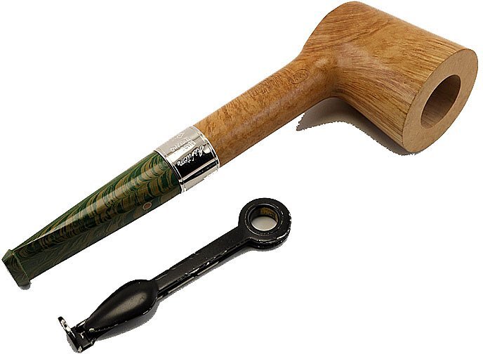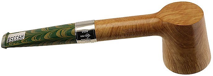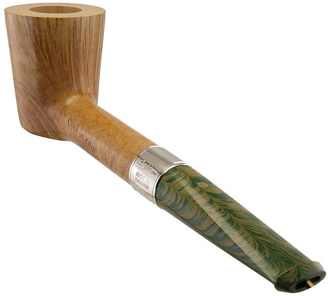 Pipa Ashton Sovereign liscia di colore naturale, modello classico dritto poker con bocchino in ebanite variegato verde/ocra (Asthonite). Valutazione XXX. La pipa è molto elegante ed il colore naturale le dona una classe superiore. La pregiata vera larga in argento la rende molto raffinata. Il fornello piatto sotto la rende molto comoda in quanto può essere poggiata senza cadere. La pipa presenta una bella venatura anche se non regolare. E' di medie/grandi dimensioni e si contraddistingue per un fornello capace che garantisce una fumabilità eccellente in ogni situazione. La leggerezza è data dalla lunga stagionatura della radica che la rende ideale per essere fumata sia a passeggio che comodamente seduti in poltrona. La serie Sovereign sono pipe senza difetti con una fiammatura presente anche se non fitta. Sono di colore naturale e sono molto rare. Negli ultimi quattro anni sono le prime che riesco da avere. Per la loro realizzazione viene usata la radica calabrese che è al contempo dura e leggera. Pipe prestigiose dalla bellezza notevole che merita sicuramente avere. Sono famose per le fumate asciutte.