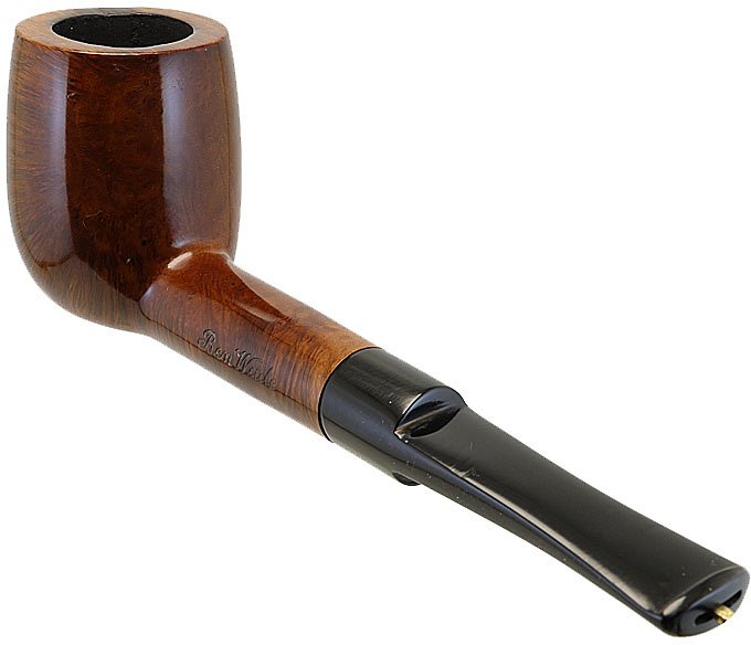 Pipa Ben Wade Rodata liscia di coloremarrone con bocchino in ebanite nero, modello dritto classico billiard. Valutazione Selected Grain. Lavenatura è bella con un fitto occhio di pernice sul davanti che le dona un aspetto elegante e raffinato. La pipa èdi medie dimensioni e si contraddistingue per un fornello discreto e unafumabilità eccellente in ogni situazione. La leggerezza la rende ideale perogni fumata che sia a passeggio o comodamente seduti in poltrona. Laparticolarità di questo modello è il segno di bruciatura sul bordo del fornello. La pipa è usata, fumata bene e principalmente con tabacchi naturali o english mixture. Valutazione 7 su 10. La pipa non ha né sacchetto né scatolaoriginale.