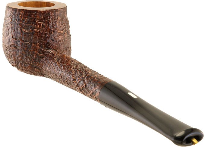 Pipa Castello Old Antiquari sabbiata di colore marrone con bocchino in metacrilato nero, modello 23 classico squat apple. Valutazione 2K. La Castello rappresenta l’espressione del miglior artigianato italiano, apprezzato in tutto il mondo, per la cura dei dettagli e per il gusto impareggiabile. La caratteristica di questo modello è la sua classicità che la rende elegante e senza tempo. E' anche una pipa relativamente compatta che si porta volentieri in giro tutto il giorno e le sue pareti spesse fan si che non scalda mai troppo la mano. Pipa molto piacevole da tenere in mano anche da spenta. Questo modello è la classica apple ma con il fornello leggermente schiacciato che la rende sempre attuale e che non stanca mai. Ha una bellissima fiammatura che viene esaltata dalla fine sabbiatura che in mano da una sensazione quasi setosa. La pipa è di medie dimensioni e si contraddistingue per un fornello più che discreto e una fumabilità eccellente in ogni situazione, che sia a passeggio o comodamente seduti in poltrona. La serie Old Antiquari rappresenta quelle pipe con piccoli difetti nella radica e una bella venatura regolare. La sabbiatura è fatta colpendo la pipa con dei minuscoli grani di silice ad un elevata pressione che scavano la parte tenera della radica creando il disegno particolare della pipa sabbiata. E' la pipa più sana in quanto se le piccole crepe fossero passanti, la silice forerebbe il ciocco immediatamente. La lavorazione è lunga e difficile da eseguire ma da un risultato finale di sicuro effetto. La qualità è uguale a tutte le altre Castello. E’ disponibile nei colori nocciola, marrone, nero, rosso e naturale. Pipa ideale per i mesi caldi in quanto scalda meno la mano. Ottima da passeggio data la sua minore propensione a righe e bolli.