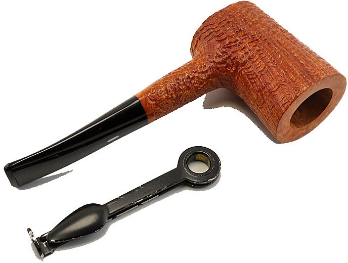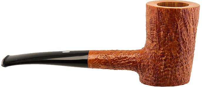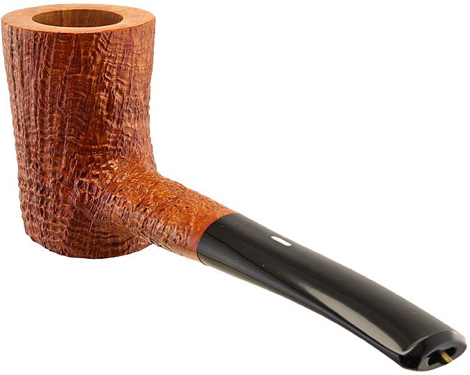 Pipa Castello Old Antiquari sabbiata di colore marrone con bocchino in metacrilato nero, modello classico poker. Valutazione 4 K. La Castello rappresenta l’espressione del miglior artigianato italiano, apprezzato in tutto il mondo, per la cura dei dettagli e per il gusto impareggiabile. La caratteristica di questo modello è la sua classicità che le dona un aspetto molto elegante e raffinato. La pipa presenta una bella fiammatura regolare che viene messa in risalto dalla fine sabbiatura. Il fondo piatto le permette di essere poggiata senza cadere. E' di medie dimensioni e si contraddistingue per un fornello capace e una fumabilità eccellente in ogni situazione, che sia a passeggio o comodamente seduti in poltrona. La serie Old Antiquari rappresenta quelle pipe con piccoli difetti nella radica e una bella venatura regolare. La sabbiatura è fatta colpendo la pipa con dei minuscoli grani di silice ad un elevata pressione che scavano la parte tenera della radica creando il disegno particolare della pipa sabbiata. E' la pipa più sana in quanto se le piccole crepe fossero passanti, la silice forerebbe il ciocco immediatamente. La lavorazione è lunga e difficile da eseguire ma da un risultato finale di sicuro effetto. La qualità è uguale a tutte le altre Castello. E’ disponibile nei colori nocciola, marrone, nero, rosso e naturale. Pipa ideale per i mesi caldi in quanto scalda meno la mano. Ottima da passeggio data la sua minore propensione a righe e bolli.