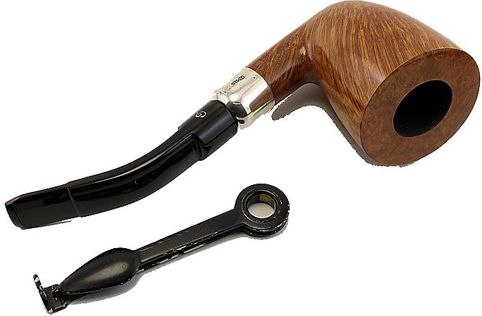 Pipa Charatan Special liscia di colore nocciola, modello curvo classico dublin con bocchino in ebanite double comfort nero. Valutazione gruppo Extra Large. La pipa è una CharatanORIGINALE, prodotta prima degli anni 80. La pipa è molto elegante con la sua linea classica, con una vera in argento army che dona alla pipa una classe superiore. La pipa è di grandidimensioni e si contraddistingue per un fornello più che capace per una fumabilità eccellente in ognisituazione, sia a passeggio che seduti comodamentein poltrona. Le forme particolari delle sue pipe ci riportano ad un epoca chenon c'è più ma mantengono un fascino incredibile. Questa in particolare fa parte di una serie più classica con l'aggiunta della vera army. La fiammatura è stupenda e regolare su tutto il fornello. Pipa incredibile che merita sicuramente possedere. Le pipe che trovate su questosito sono tutte prodotte prima del 1978, alcune ancora negli anni 60.