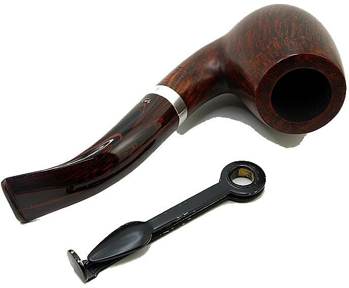 Pipa Charles Fairmorn liscia di colore marrone, modello curvo classico billiard con bocchino in ebanite cumberland e vera in argento. La pipa supporta il filtro da 9 mm. La pipa è compatta con una bella fiammatura, e molto elegante e, pur avendo dimensioni importanti, è ben bilanciata. La pipa è di grandi dimensioni e si contraddistingue per un fornello generoso per una fumabilità eccellente in ogni situazione. La leggerezza la rende ideale per ogni fumata che sia a passeggio o comodamente seduti in poltrona. Le pipe Charles Fairmorn lisce sono tutte caratterizzate da una bella venatura che viene esaltata dai modelli classici. Le pipe sono state prodotte negli anni '80.