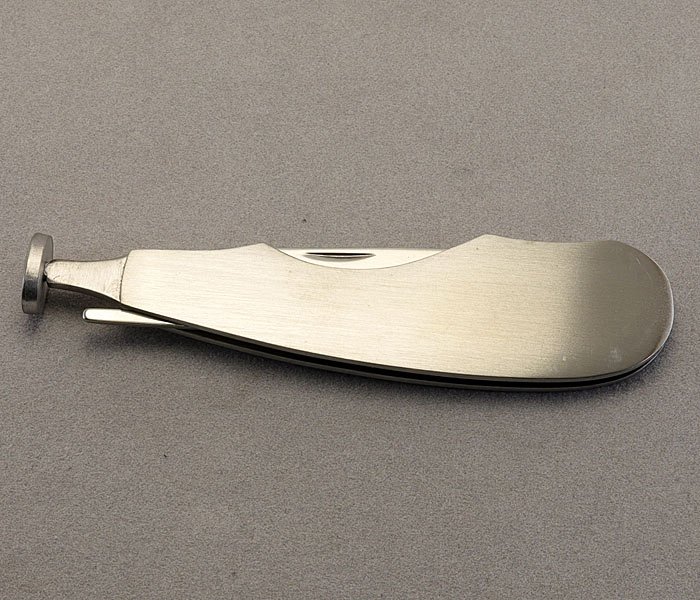 Curapipe in acciaio a forma di balena con pestello in acciaio. Il curapipe è composto da pestello, coltellino e punta.