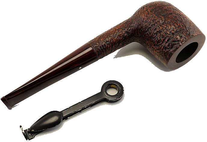 Pipa Dunhill Cumberland sabbiata di colore marrone, modello billiard dritto classico numero 5103 con bocchino tradizionale in ebanite cumberland. Gruppo di valutazione 5. La pipa è molto elegante e la sua linea pulita ed essenziale le dona uno stile superiore. Per molti questo modello è "la Pipa". E' di grandi dimensioni e si contraddistingue per un fornello capace per una fumabilità eccellente in ogni situazione; è il modello classico dritto della Dunhill per eccellenza. La leggerezza la rende ideale per ogni fumata che sia a passeggio o comodamente seduti in poltrona. Una classica che non stanca mai ed è sempre attuale. La Cumberland è stata introdotta nel 1979. Sabbiata marrone con bocchino (ormai detto Cumberland) striato in sfumature di marrone, rossastro, rosa antico. Il bordo del fornello a volte è liscio, a volte sabbiato. In origine era soltanto liscio lucido. La sabbiatura è molto delicata che da alla pipa un effetto "morbido". La pipa è stata prodotta nel 2017.