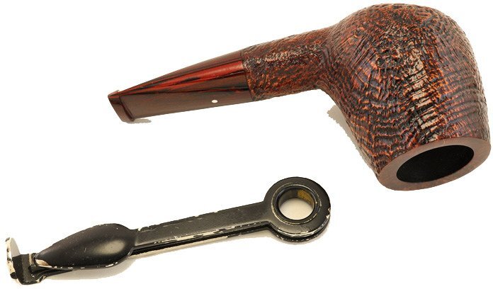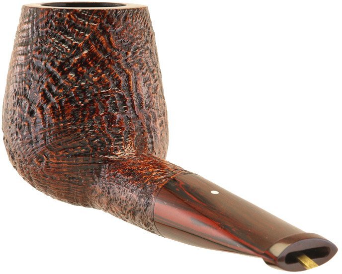 Pipa Dunhill Cumberland sabbiata di colore marrone, modello brandy dritto classico numero 4934 con bocchino tradizionale in ebanite cumberland. Gruppo di valutazione 4. La pipa è molto elegante e la sua linea pulita ed essenziale, molto particolare, le dona uno stile superiore. La sua lunghezza ridotta ne fa una perfetta "brucianaso". Questo modello nasce per un'esigenza molto particolare che è fumare la pipa in macchina. Vista la sua ridotta lunghezza non si rischia di sbattere con la pipa sul finestrino girando la testa. Geniale e divertente. E' di medie dimensioni e si contraddistingue per un fornello capace per una fumabilità eccellente in ogni situazione; è un modello classico che non è prodotto frequentemente ma sempre molto apprezzato dai fumatori della Dunhill. La leggerezza la rende ideale per ogni fumata che sia a passeggio o comodamente seduti in poltrona. La pipa ha una pregevole fiammatura di taglio inglese con un bell'occhio di pernice su un lato del fornello che le dona una classe assoluta. Una pipa originale che non stanca mai ed è sempre attuale. Il sotto del cannello è piatto che la rende anche molto comoda in quanto può essere poggiata senza cadere. La Cumberland è stata introdotta nel 1979. Sabbiata marrone con bocchino (ormai detto Cumberland) striato in sfumature di marrone, rossastro, rosa antico. Il bordo del fornello a volte è liscio, a volte sabbiato. In origine era soltanto liscio lucido. La sabbiatura è molto delicata che da alla pipa un effetto "morbido". La pipa è stata prodotta nel 2025.