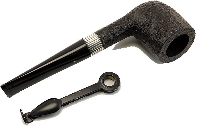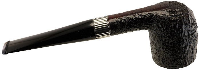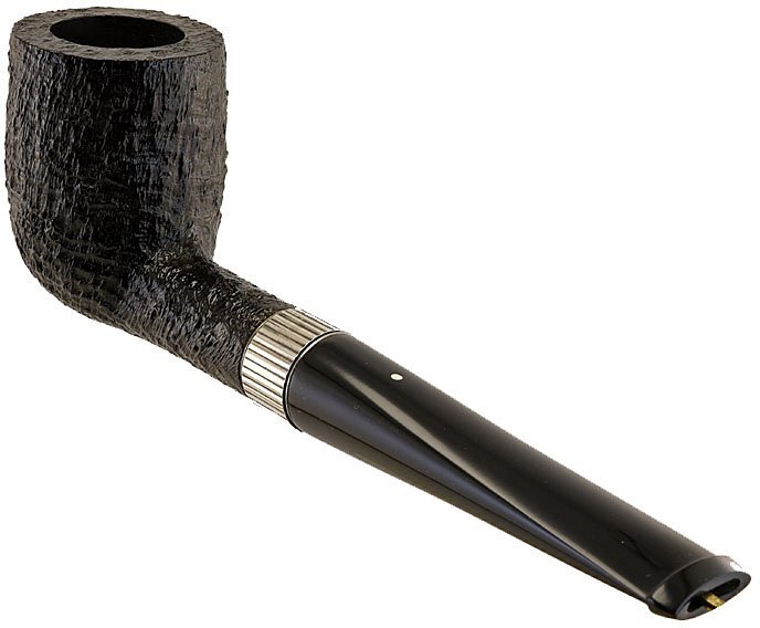 Pipa Dunhill Shell sabbiata di colore nero, modello billiard dritto classico numero 5103 con bocchino tradizionale in ebanite nero. La pipa è molto elegante e la vera in argento a righe verticali la rende molto raffinata. Fa parte di una serie di pipe prodotte nei primi anni 2000 come la Hallmark, e la particolarità è la vera lavorata da 12 mm. La pipa è di grandi dimensioni e si contraddistingue per un fornello capace per una fumabilità eccellente in ogni situazione; è il modello classico dritto della Dunhill per eccellenza. La leggerezza la rende ideale per ogni fumata che sia a passeggio o comodamente seduti in poltrona. Una classica che non stanca mai ed è sempre attuale. La serie Shell si contraddistingueva per una doppia sabbiatura che dava un risultato più profondo mentre oggi la sabbiatura è singola per un effetto più “morbido”. Questa serie è stata introdotta nel 1917 e fu il secondo finissaggio introdotto da Dunhill, ed è ancora oggi un punto di riferimento del marchio. La pipa è stata prodotta nel 2001. Gruppo di valutazione 5.