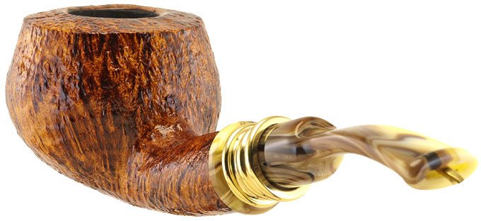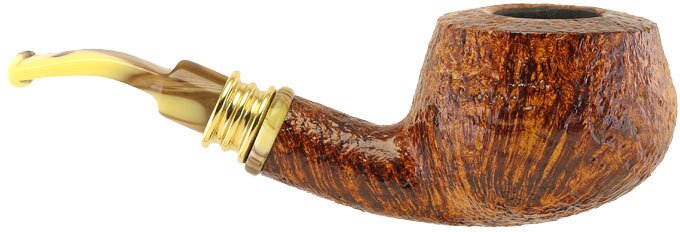 Neerup Classic Series pipe, sandblasted brown with a variegated methacrylate mouthpiece, semi-curved pot model. Group 2 rating. Peder Jeppesen's pipes are characterised by a typical Danish design that he has personalised over the years. The shapes are compact and the original, sinuous lines give his pipes a contemporary elegance, thanks also to the colours of their mouthpieces. It is an atypical model because it looks like an apple pipe but cut at the top, making it a pot pipe. The pipe is medium/large in size and stands out for its more than capable bowl, which provides excellent smokeability in any situation. Its lightness makes it ideal for smoking while walking or sitting comfortably in an armchair. The beautiful flame pattern is enhanced by the fine sandblasting, which gives it an almost silky feel. The colouring is typical of the craftsman, with a brown colour that turns to rust, creating beautiful shades that give the pipe a superior class. The gold ring is very beautiful and unpretentious, yet very elegant and refined. The seasoned Italian briarwood performs at its best after just a few smokes. This pipe is ideal for the warmer months as it does not heat up the hand as much. Excellent to carry around given its lower propensity for scratches and marks. The Neerup series are machine-carved and hand-finished pipes. The quality is excellent, like Peder Jeppesen pipes, but the price is significantly lower. An excellent opportunity to try a very good Danish-style pipe.