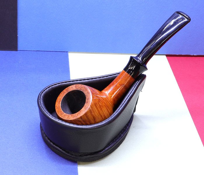 Lubinski poggiapipe a goccia con un posto. Questo poggiapipe è realizzato in pelle di colore nero. Ideale per tutti i tipi di pipe e spesso anche per le pipe in schiuma .