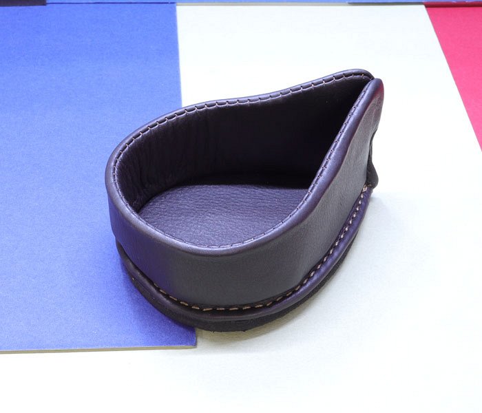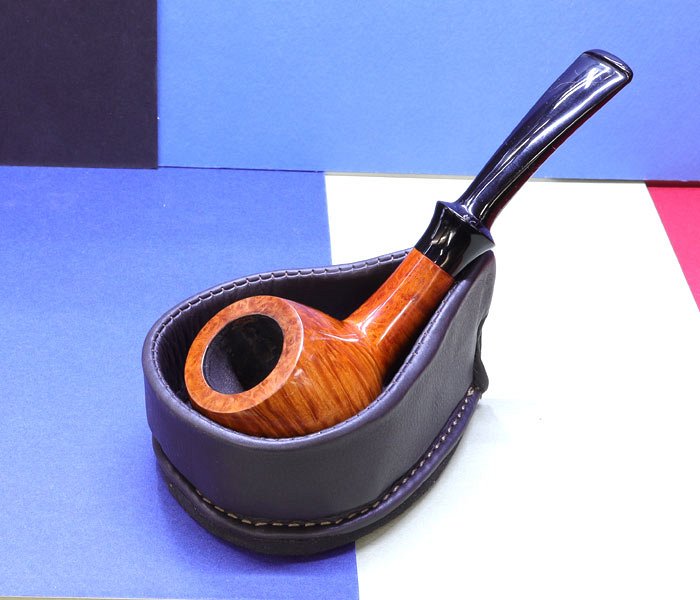 Lubinski poggiapipe a goccia con un posto. Questo poggiapipe è realizzato in pelle di colore testa di moro. Ideale per tutti i tipi di pipe e spesso anche per le pipe in schiuma .