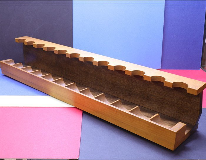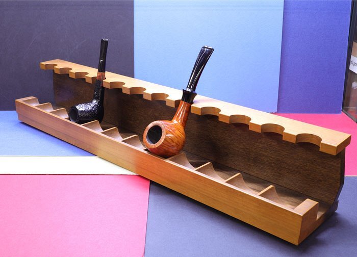 Lubinski poggiapipe modello da 12 posti. Il poggiapipe è realizzato in noce. Questo poggiapipe è ideale per chi possiede solo pipe piccole.