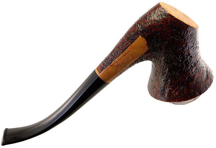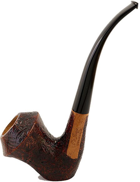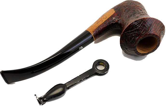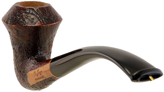 Pipa Ser Jacopo sabbiata di colore marrone scuro, modello curvo fancy bulldog con bocchino in metacrilato nero. Valutazione gruppo S2 Maxima. La pipa ha un grande impatto visivo dato dalla sua linea originale che ricorda l'eleganza e la grazia di un fenicottero. Il suo bilanciamento perfetto le permette di essere poggiata senza cadere. La fine sabbiatura la rende molto gradevole da tenere in mano e da una sensazione quasi setosa. La sua curvatura accentuata la rende molto comoda in quanto non pesa sui denti. E' di medie/grandi dimensioni e si contraddistingue per un fornello capace che garantisce una fumabilità eccellente in ogni situazione. La leggerezza la rende ideale per ogni fumata che sia a passeggio o comodamente seduti in poltrona. La serie S2 sono quelle pipe con piccoli difetti che vengono sabbiate ma hanno una bellissima venatura come si può notare sulla testa di questo modello. La lavorazione è molto lunga ma il risultato è di sicuro effetto. Pipa ideale per i mesi caldi in quanto scalda meno la mano. Ottima da passeggio data la sua minore propensione a righe e bolli. Pipa dalla linea importante ed originale che mette in risalto le capacità artigiane della Ser Jacopo.