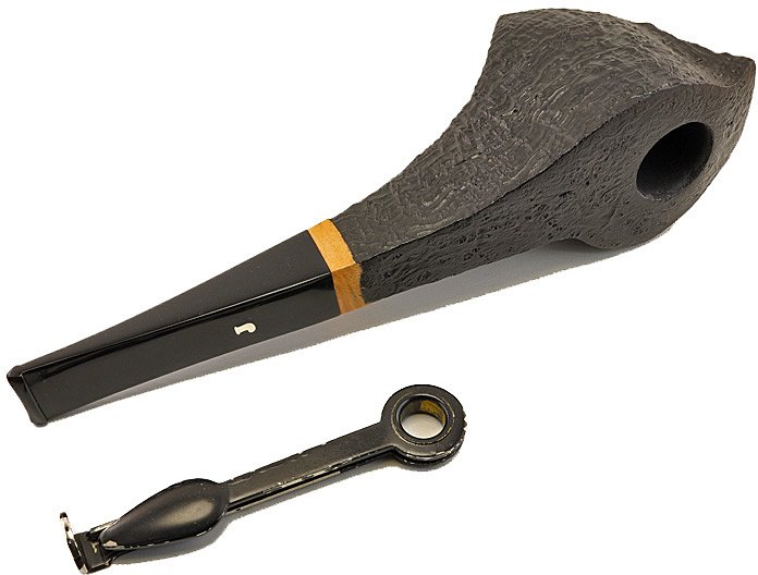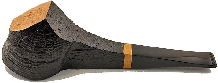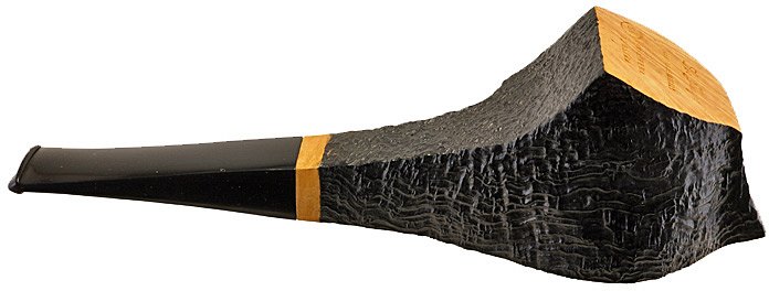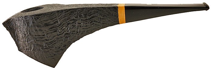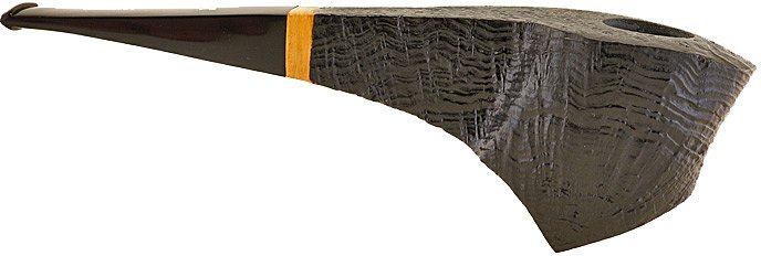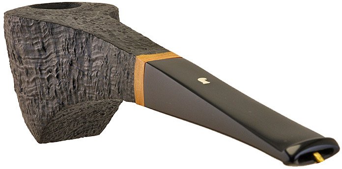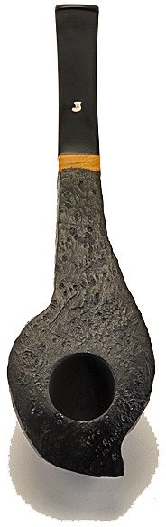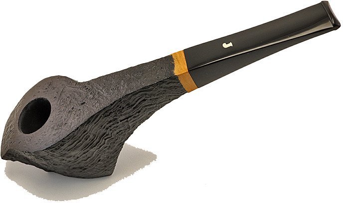 Pipa Ser Jacopo sabbiata di colore nero, modello fancy artistic con bocchino in metacrilato nero. Valutazione gruppo S1. La pipa ha un grande impatto visivo dato dalle sue linee originali. Questo modello è stato creato da Fiorella, storica artigiana della Ser Jacopo, che ha dato forma ad un'idea originale, capace di  sfidare le convenzioni. Ne è nata una pipa dall'estetica straordinaria, ottima da fumare e bella da ammirare anche solo quando poggiata sulla propria scrivania. La fine sabbiatura mette in risalto una bella fiammatura e la parte anteriore del fornello è sagomato da sembrare quasi una virgola che la rendono molto elegante e raffinata. Questa sabbiatura la rende molto gradevole da tenere in mano e da una sensazione quasi setosa. La sua linea sinuosa e particolare la rende fresca e nuova. Il sotto del fornello è stato studiato per far si che la pipa si possa poggiare senza cadere, mostrando un bilanciamento perfetto. E' di medie/grandi dimensioni e si contraddistingue per un fornello capace che garantisce una fumabilità eccellente in ogni situazione. La leggerezza, nonostante le dimensioni, la rende ideale per ogni fumata che sia a passeggio o comodamente seduti in poltrona. La serie S1 sono quelle pipe con piccoli difetti che vengono sabbiate ma hanno una bella venatura come si può notare sulla testa di questo modello. La lavorazione è molto lunga ma il risultato è di sicuro effetto. Pipa ideale per i mesi caldi in quanto scalda meno la mano. Ottima da passeggio data la sua minore propensione a righe e bolli. Pipa dalla linea importante ed originale che mette in risalto le capacità artigiane della Ser Jacopo.