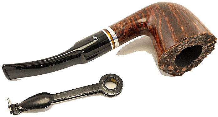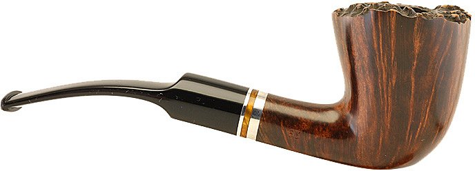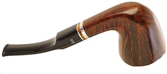 Pipa Stanwell Trio liscia di colore marrone, modello curvo classico 63 dublin con bocchino in metacrilato nero. Valutazione Trio Smooth. La pipa è molto elegante e raffinata, con una linea classica tipicamente Stanwell. Ha una bella fiammatura di taglio tradizionale discretamente fitta su tutto il fornello che la rende molto stilosa. Anche se la venatura è leggermente larga, il disegno del legno è comunque molto bello. La pipa è di medie dimensioni e si contraddistingue per un fornello capace e una fumabilità eccellente in ogni situazione. La leggerezza la rende ideale per ogni fumata che sia a passeggio o comodamente seduti in poltrona. Pipa dalla linea classica, sempre attuale e che non stanca mai. Il suo colore caldo e la tripla vera la rendono di gran classe. Meraviglioso il bordo del fornello a fine ciocco. La serie Trio della Stanwell è caratterizzata da una triplice veretta che dona alla pipa una classe superiore. Le pipe sono sbozzate a macchina ma rifinita a mano e presentano sempre una bella fiammatura sempre presente. Capita a volte che la fiammatura sia non bella ma favolosa. E' disponibile sia sabbiata nera che liscia lucido marrone chiaro a cui si aggiunge il caratteristico design scandinavo. Questo particolare di modificare modelli classici con le filosofie estetiche scandinave tipiche del Danish Design è il motivo che ha fatto diventare famose le pipe danesi.