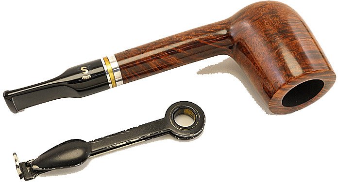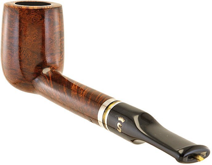 Pipa Stanwell Trio liscia di colore marrone, modello dritto classico 98 lovat con bocchino in metacrilato nero. Valutazione Trio Smooth. La pipa è molto elegante e raffinata, con una linea classica tipicamente Stanwell. Ha una bella fiammatura di taglio inglese con un pregevole occhio di pernice su un lato del fornello che la rende molto stilosa. Anche se la venatura non è regolare, il disegno del legno è comunque molto bello. La pipa è di medie dimensioni e si contraddistingue per un fornello più che discreto e una fumabilità eccellente in ogni situazione. La leggerezza la rende ideale per ogni fumata che sia a passeggio o comodamente seduti in poltrona. Pipa dalla linea classica, sempre attuale e che non stanca mai. Il suo colore caldo e la tripla vera la rendono di gran classe. La serie Trio della Stanwell è caratterizzata da una triplice veretta che dona alla pipa una classe superiore. Le pipe sono sbozzate a macchina ma rifinita a mano e presentano sempre una bella fiammatura sempre presente. Capita a volte che la fiammatura sia non bella ma favolosa. E' disponibile sia sabbiata nera che liscia lucido marrone chiaro a cui si aggiunge il caratteristico design scandinavo. Questo particolare di modificare modelli classici con le filosofie estetiche scandinave tipiche del Danish Design è il motivo che ha fatto diventare famose le pipe danesi.