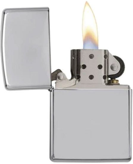 Accendino Zippo Regular antivento a benzina con cassa in ottone cromato e inserto in acciaio, modello High Polish Chrome. La caratteristica di questo modello è la lavorazione della cassa a specchio su tutti i lati che danno una sensazione setosa in mano. Il castelletto a protezione della fiamma lo rendono molto comodo in quanto anche in presenza di vento forte, la fiamma non si spegne. La meccanica dell’accendino è molto semplice, con una cassa in acciaio piena di ovatta e di uno stoppino reso semi rigido da fili di rame, una pietra focaia per la scintilla. Questa semplicità fa si che uno Zippo funziona sempre e la ditta ci crede talmente che, da sempre, ha una garanzia a vita. Nel raro caso che l’accendino si guastasse, basta scaricare un modulo sul sito della Zippo e spedirlo in Germania dove viene riparato e rispedito al mittente gratis. Come per tutti gli accendini a benzina non c’è la regolazione della fiamma e la sua altezza dipende dalla lunghezza dello stoppino. Lo stoppino si consuma nel tempo e bisogna, ogni tanto, tirarlo su. La carica dello Zippo dura mediamente un paio di giorni ma con alcune accortezze si può arrivare anche al doppio. La prima cosa da fare è aggiungere un po' di cotone a quello già nell’accendino in modo che sia ben pressato e poi fare attenzione quando si mette in tasca. Se lo si mette verticale la carica dura di più. E’ importante usare solo benzina altamente pulita e quella della Zippo è la migliore. Ci sono altri marchi sul mercato ma spesso sono più grasse e col tempo impastano e sporcano il meccanismo. Lo Zippo è meno indicato per sigari e pipe, per i quali sono stati creati degli inserti a gas che fanno al caso loro. L’accendino è corredato da una elegante scatola regalo originale.