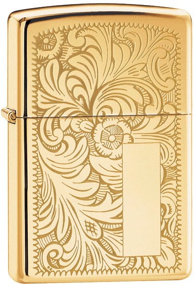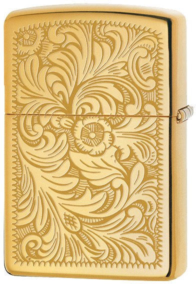 Accendino Zippo Regular antivento a benzina con cassa in ottone lucidato e inserto in acciaio, modello con incisione Venetian sul davanti e sul retro. La caratteristica di questo modello è la lucidatura a specchio con un incisione floreale. Questo Zippo è tra i più venduti di sempre e diventato ormai iconico. Il castelletto a protezione della fiamma lo rendono molto comodo in quanto anche in presenza di vento forte, la fiamma non si spegne. La meccanica dell’accendino è molto semplice, con una cassa in acciaio piena di ovatta e di uno stoppino reso semi rigido da fili di rame, una pietra focaia per la scintilla. Questa semplicità fa si che uno Zippo funziona sempre e la ditta ci crede talmente che, da sempre, ha una garanzia a vita. Nel raro caso che l’accendino si guastasse, basta scaricare un modulo sul sito della Zippo e spedirlo in Germania dove viene riparato e rispedito al mittente gratis. Come per tutti gli accendini a benzina non c’è la regolazione della fiamma e la sua altezza dipende dalla lunghezza dello stoppino. Lo stoppino si consuma nel tempo e bisogna, ogni tanto, tirarlo su. La carica dello Zippo dura mediamente un paio di giorni ma con alcune accortezze si può arrivare anche al doppio. La prima cosa da fare è aggiungere un po' di cotone a quello già nell’accendino in modo che sia ben pressato e poi fare attenzione quando si mette in tasca. Se lo si mette verticale la carica dura di più. E’ importante usare solo benzina altamente pulita e quella della Zippo è la migliore. Ci sono altri marchi sul mercato ma spesso sono più grasse e col tempo impastano e sporcano il meccanismo. Lo Zippo è meno indicato per sigari e pipe, per i quali sono stati creati degli inserti a gas che fanno al caso loro. L’accendino è corredato da una elegante scatola regalo originale.